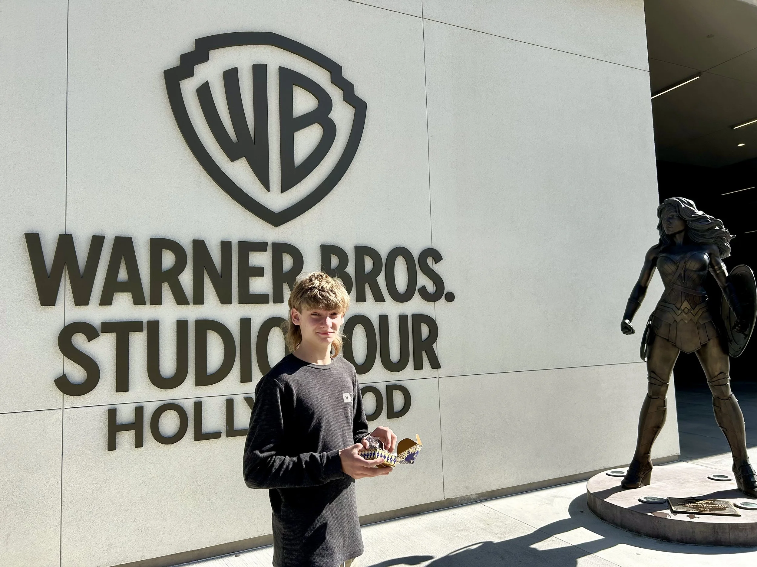 We split the band in 2 for the first couple days and Michele took Robert and Peyton to Universal Studios and Vince took Jayden to Warner Brothers as well as a few other stops in the Hollywood Hills and Costco (Jayden wasn’t impressed with Costco 😏). Few other drive by sightings of the Hollywood reservoir, Chinese Theater, the Colosseum, Hollywood and some AI bots all over the place 😳 If Skynet is taking over soon it’s likely L.A. will be their home 😏 We saw AI cars (picture below, white car with cameras all over it) amidst the Lamborghini/Audi/Ferrari rentals available on Hollywood Blvd. Also saw a few delivery bots out on the sidewalk in Hollywood so we think that is where the robots are building their forces. The Lucas Museum of Native Art is also suspiciously like a spaceship so it may be the galaxy instead of just Earth when they take over. It’s happening people! But seriously the Lucas Museum is stunning and definitely on our priority list next time in L.A. 🤯