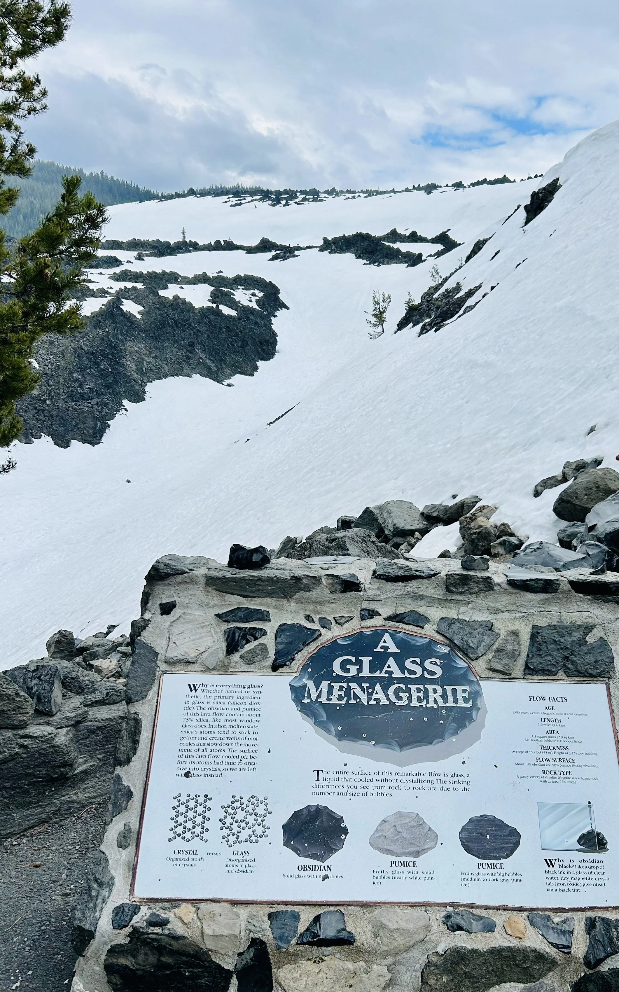 If you zoom in on a few of the rocks peaking through the snow, they're obsidian. This is a large flow of obsidian that came form the Newberry Volcano. It’s a unique feature and really fun covered in snow.